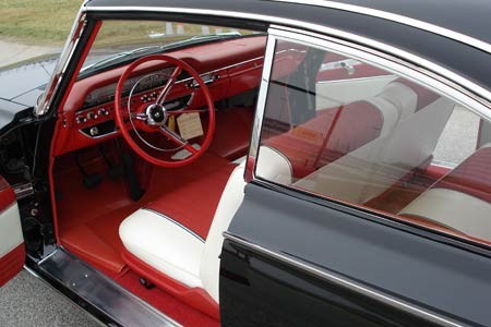 Galaxies were available in thirteen different colors, or two-tone combinations in 1961 and interiors came in complementing color combinations of cloth and vinyl with silver Mylar accents.