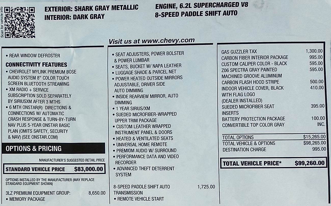 āWow.ā That was my first impression of the Z06 Corvette when I first viewed a hardtop last December at the Chevy dealer. The car was outstanding. Fits and finishes were clean and even. The engine bay was clean and not jammed with a lot of hardware as if someone assembled the car with no attention to location and accessibility. The tone of the exhaust was deep. Unfortunately, I was not allowed to drive the car. Also, I really wanted a convertible, which were not yet in production. Come late January/February, production of convertibles was initiated. It took several hours to decide and spec out a vehicle. In early April the Z06 arrived. One sight of the vehicle and I was done for. Like the hardtop, the fits and finishes were outstanding. I drove the car, and Iāll tell youā I donāt think the engineers could have done a better job of designing a vehicle. The horsepower and torque of the supercharged 6.2L engine is phenomenal. The handling and balance of the vehicle is superb. There are no shortcomings to the vehicle that I have found, and I donāt think I will.