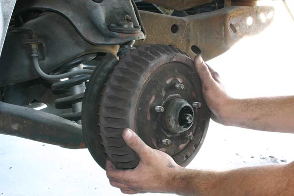 Once the tension has been released, along with the cotter pin and spindle nut, simply pull the drum from the hub assembly.